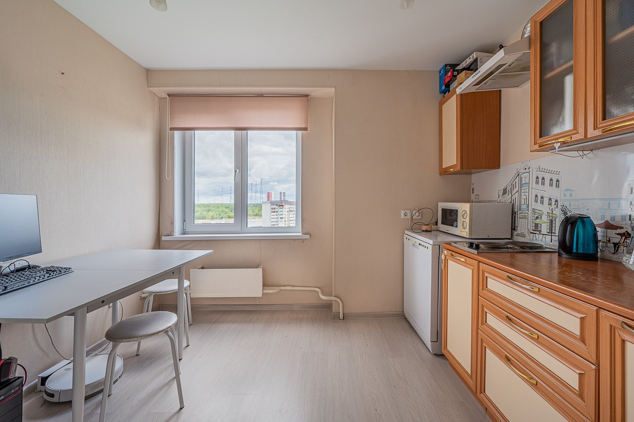 ОБ ИНФРАСТРУКТУРЕ: Хорошая транспортная доступность: в трех минутах ходьбы остановка общественного транспорта, до станции метро Проспект Космонавтов 25 минут пешком. Рядом с домом продуктовые магазины, ТЦ Веер Молл, три детских сада, школа по прописке № 27 (10 минут пешком), есть вся необходимая инфраструктура.