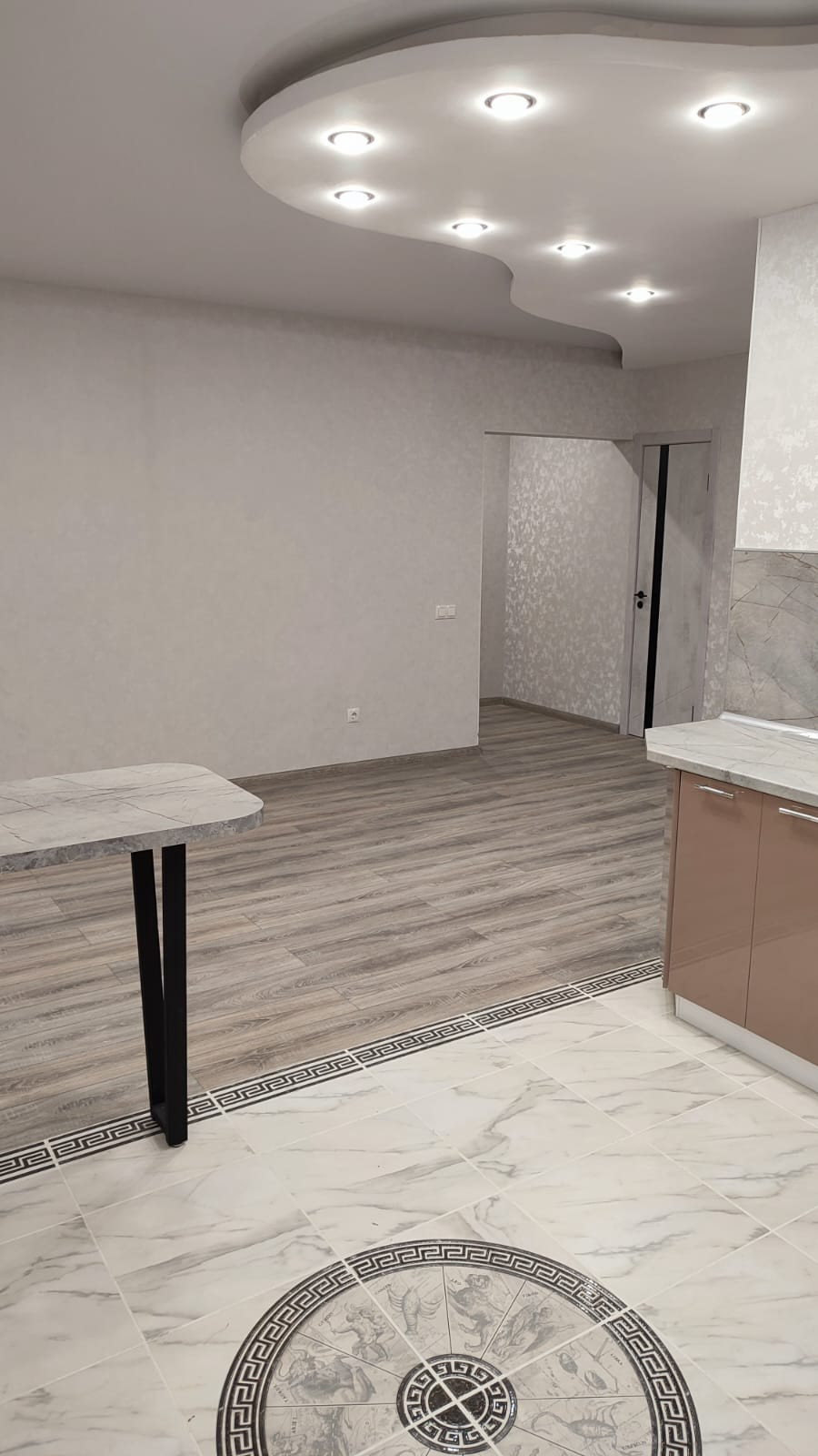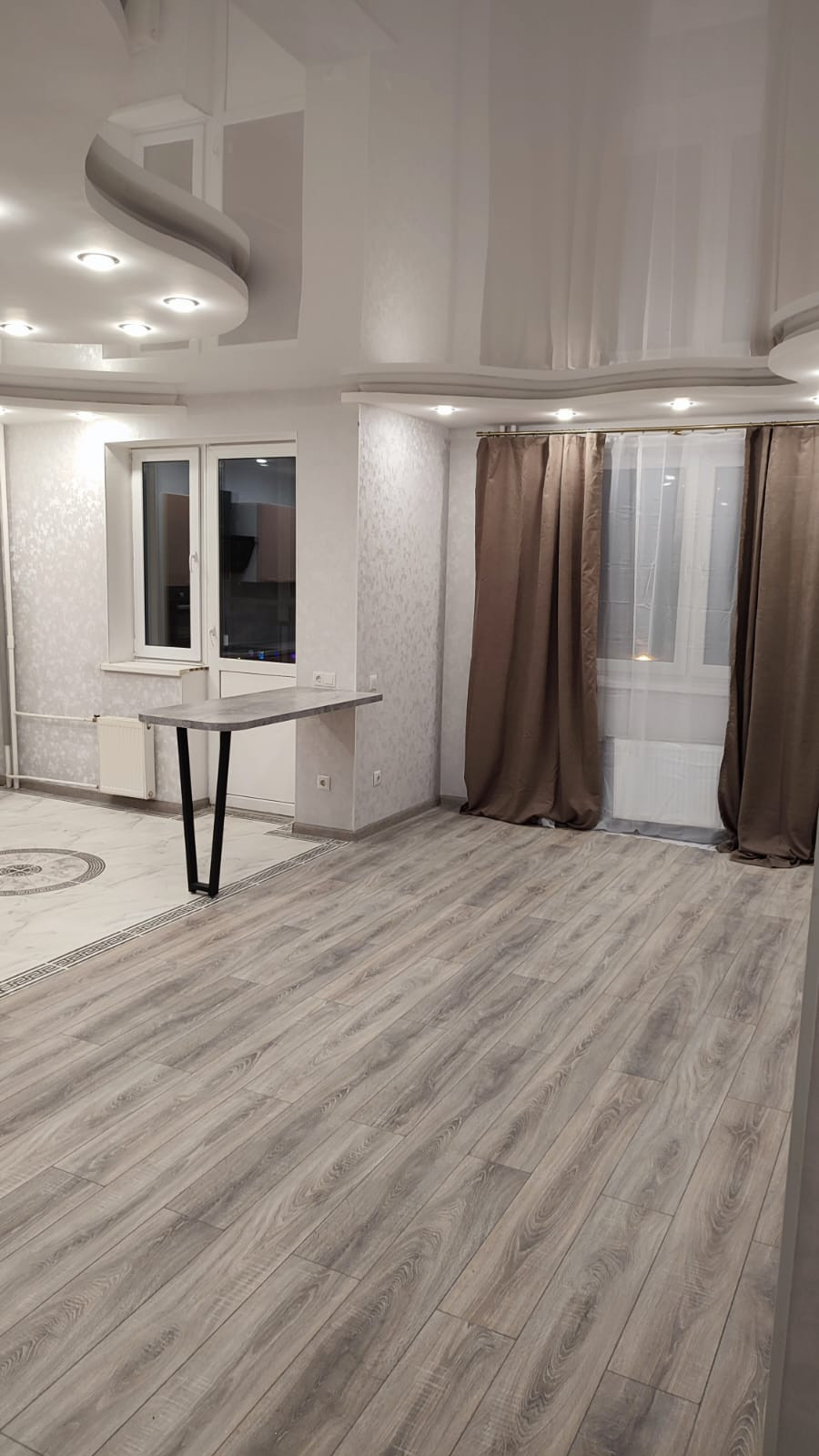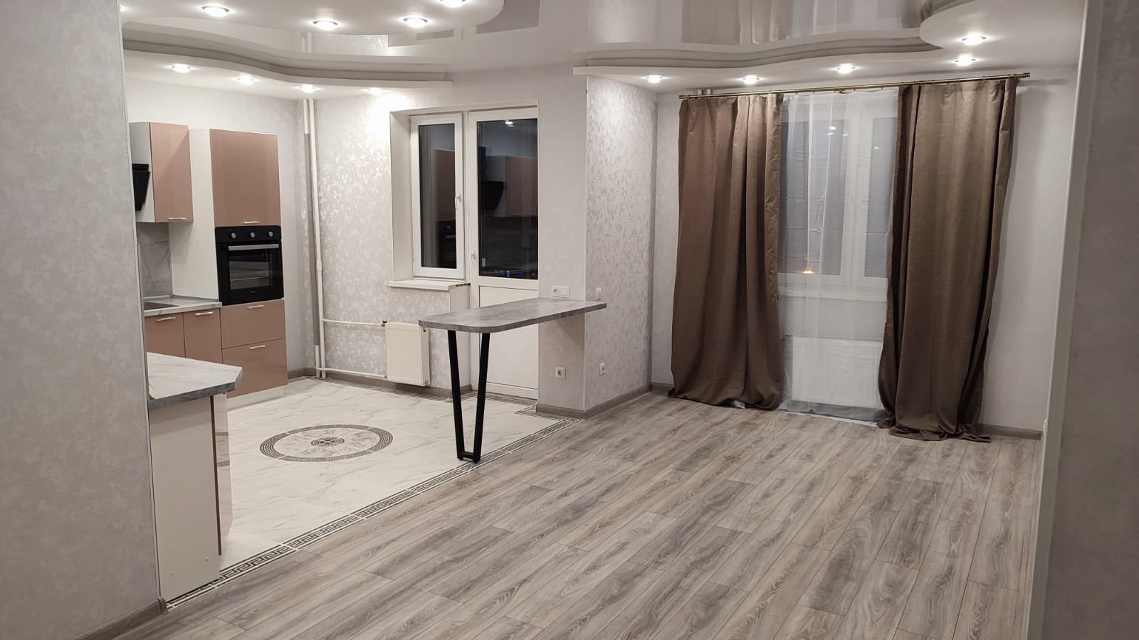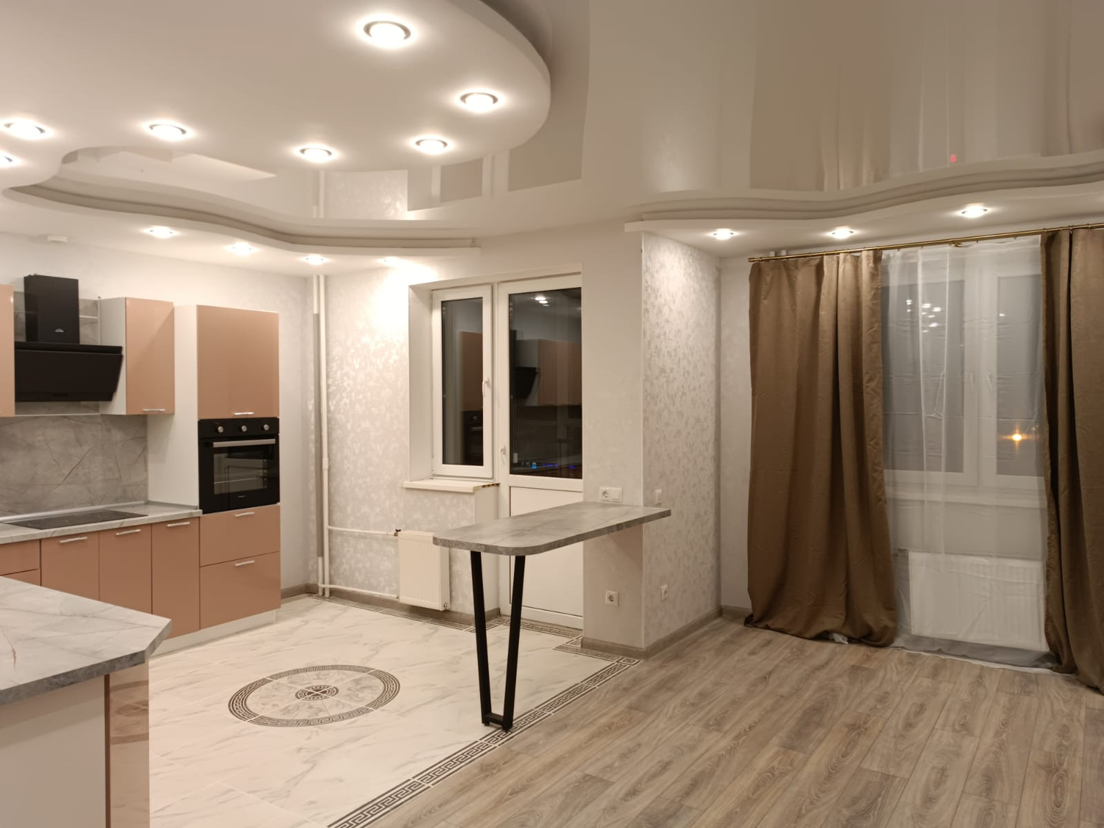 В квартире сделан капитальный ремонт из импортных материалов, установлены подвесные потолки, двери, сантехника, кухонный гарнитур с техникой (варочная поверхность, духовой шкаф, посудомоечная машина).  (После ремонта никто не жил).