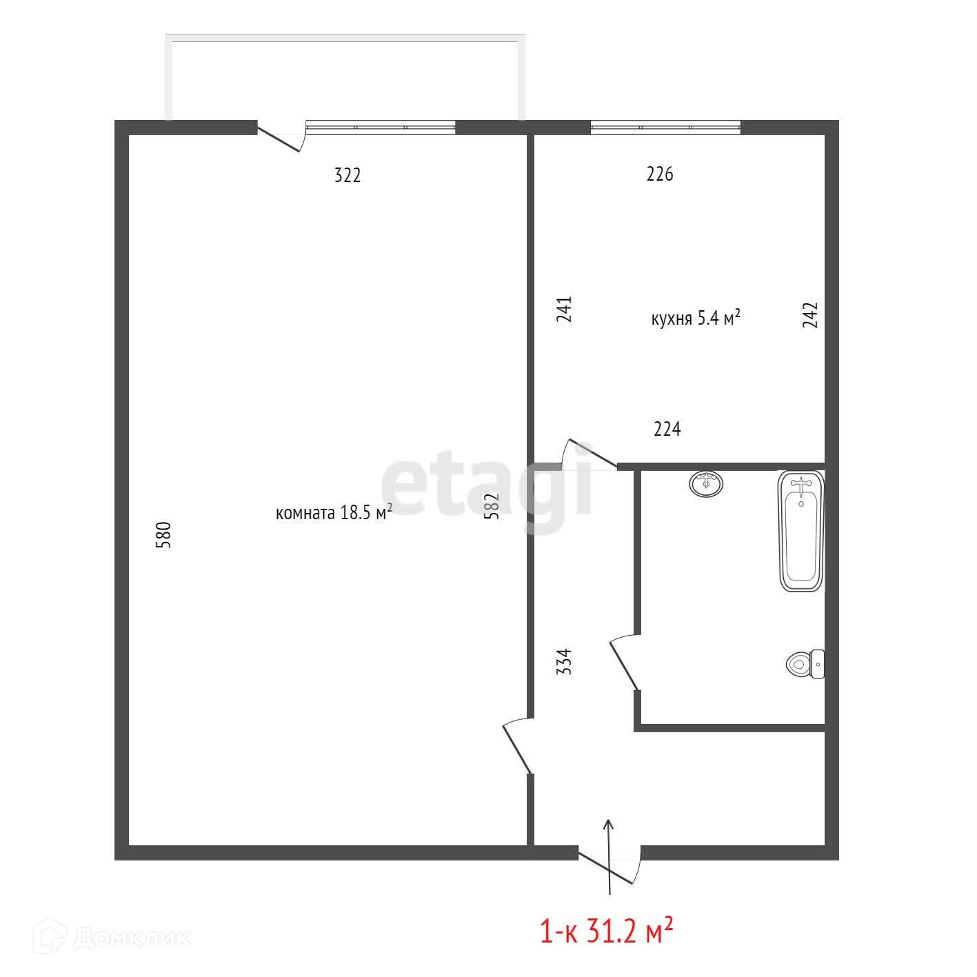 Общая площадь 31.2 м2