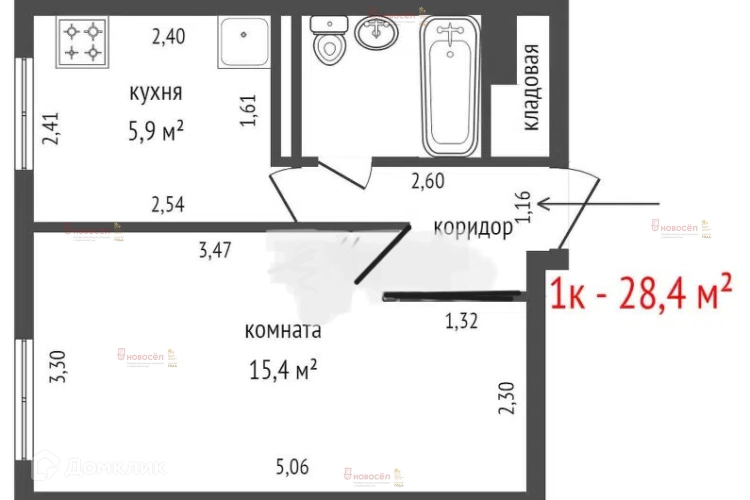 Общая площадь 28 м2
