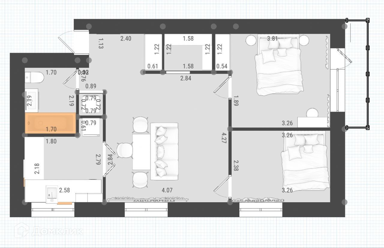 - встроенные шкафы в прихожей, спальне, гардеробе