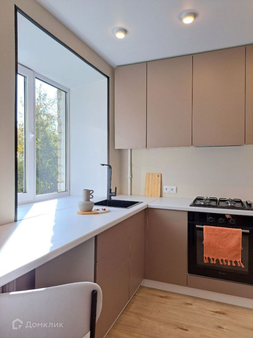Новым собственникам остается кухонный гарнитур с  духовкой, варочной панелью и вытяжкой,