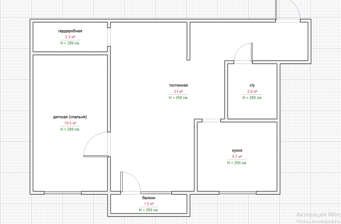Общая площадь 46 м2