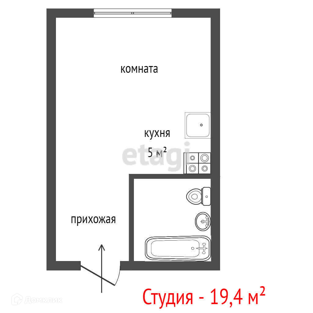 Общая площадь 19.4 м2