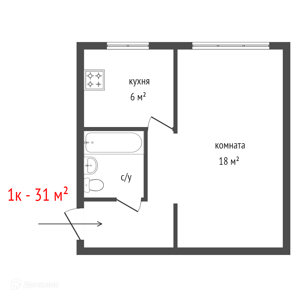 Общая площадь 30.6 м2