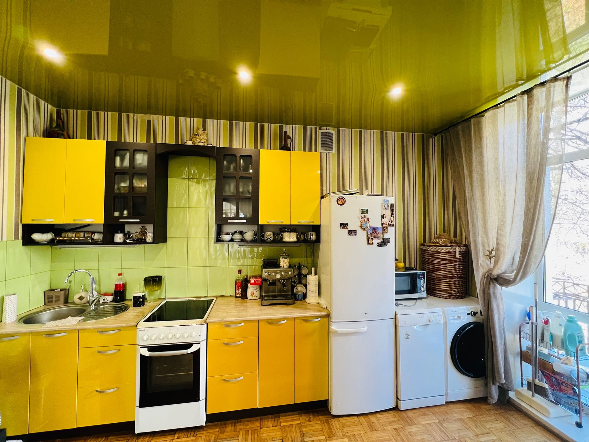 Продается уютная квартира с высокими потолками в «сталинке» с отличной планировкой: угловая квартира с эркерным окном, солнечная и светлая, сохранен оригинальный паркет, натуральный дуб. Мебель и техника в кухне остаётся. Сделан хороший ремонт: качественные обои, натяжные потолки. Закрытый тихий уютный двор, школы , детские сады , парк, больница и остановка общественного транспорта рядом.