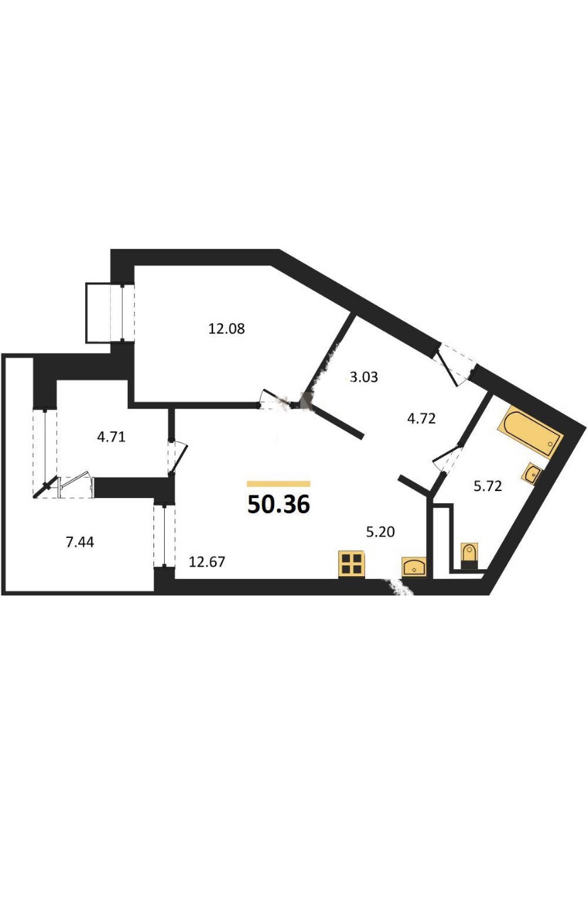 Общая площадь 50.36 м2