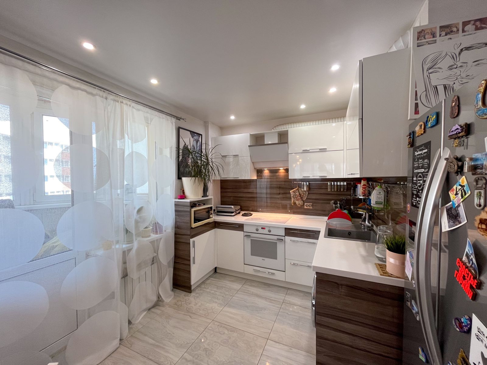 - на кухне: двухкамерный холодильник, кухонный гарнитур со встроенной бытовой техникой (духовой шкаф, плита, вытяжка);