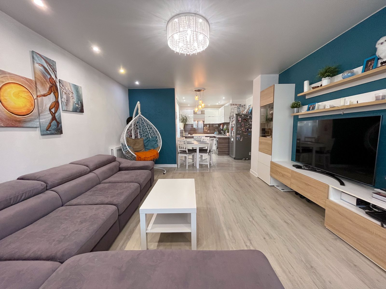 - в гостиной: модульная стенка, диван;