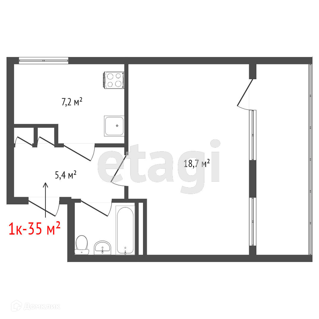 Общая площадь 35 м2