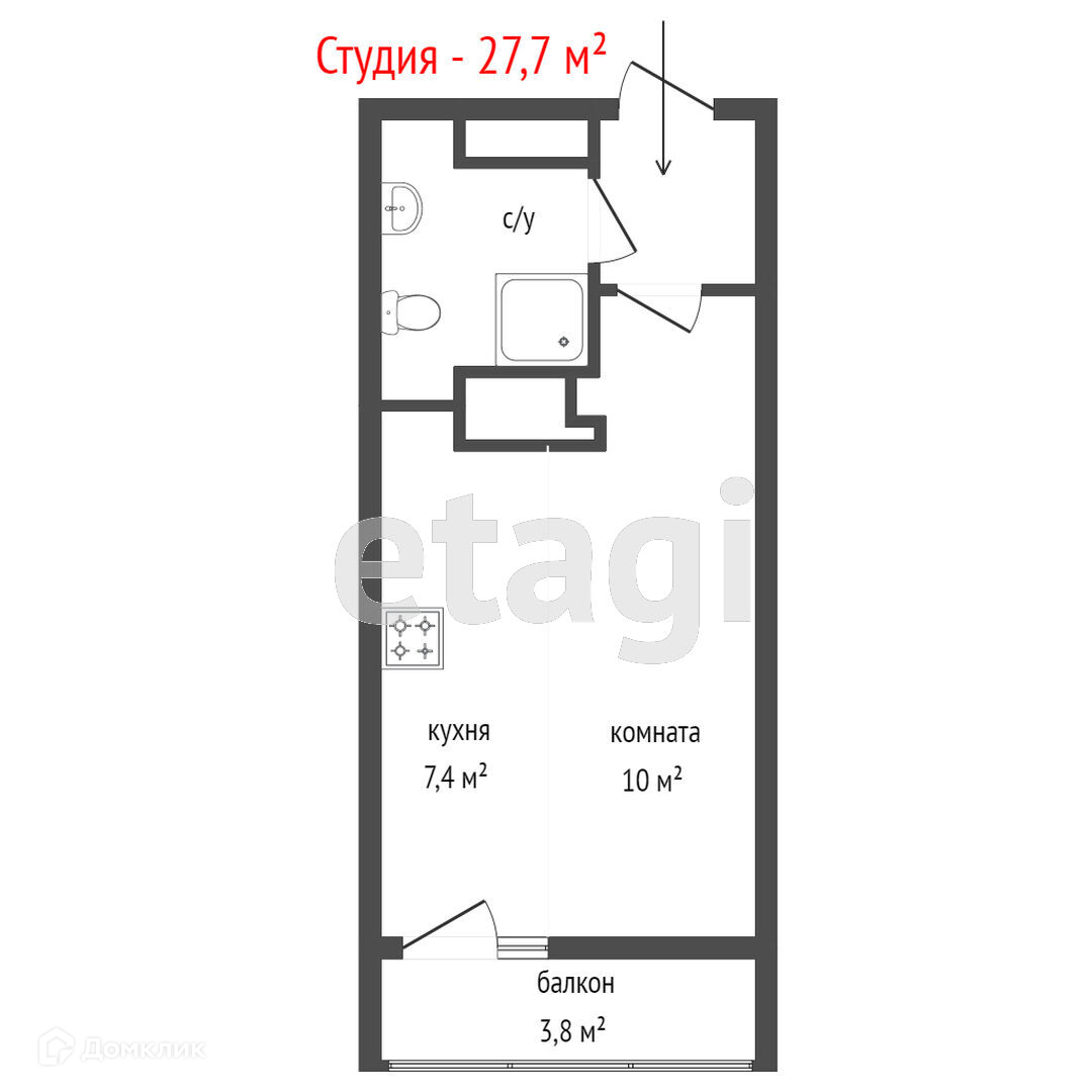 Общая площадь 27 м2
