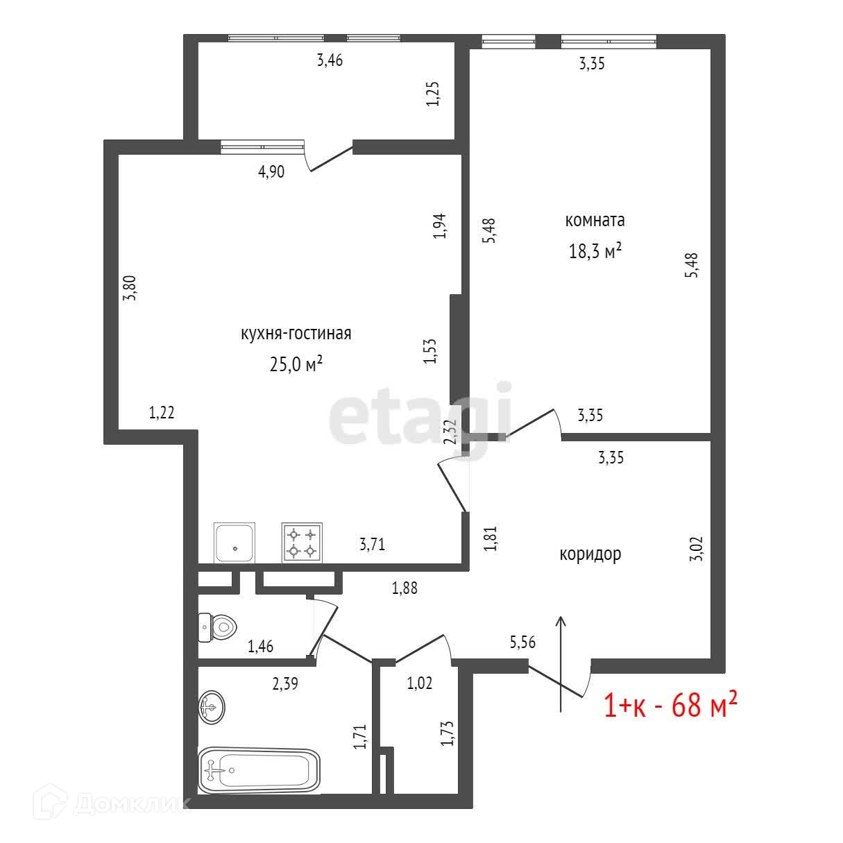 Общая площадь 68 м2