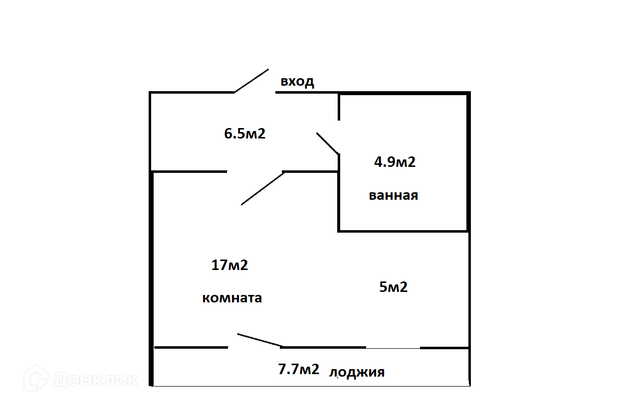 Общая площадь 43.6 м2
