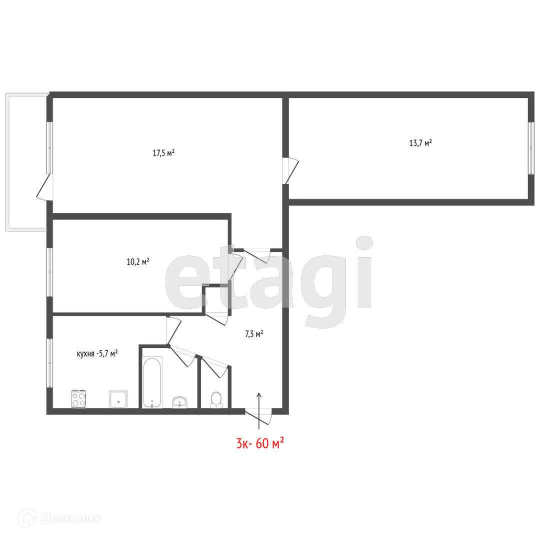 3-комнатная квартира, 60 м2, этаж 5 / 9, на продажу в Екатеринбурге, Боровая улица, 22