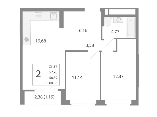 Общая площадь 60.08 м2
