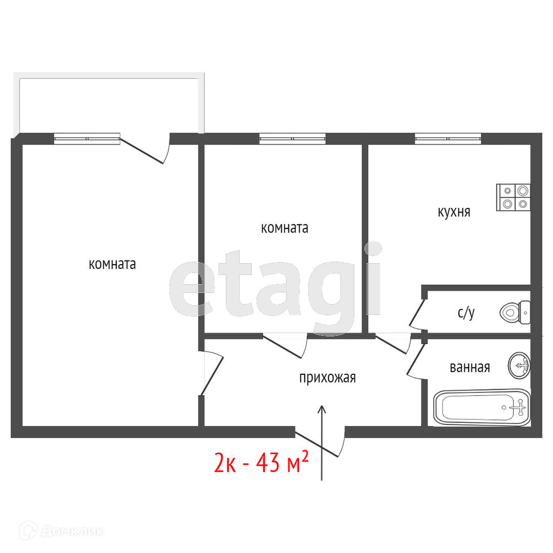 Общая площадь 43 м2