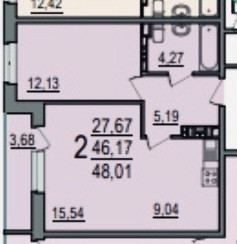 Общая площадь 47 м2