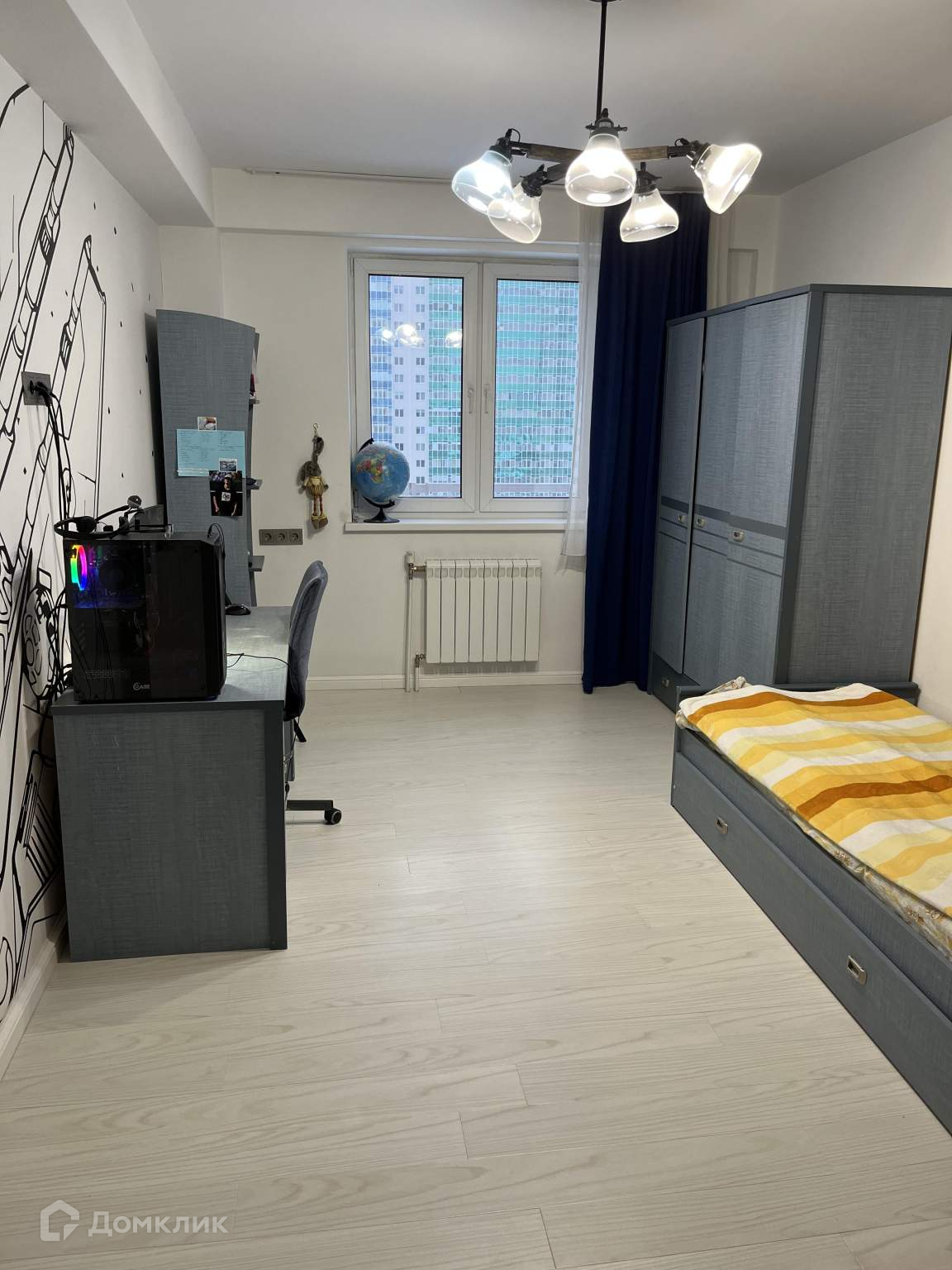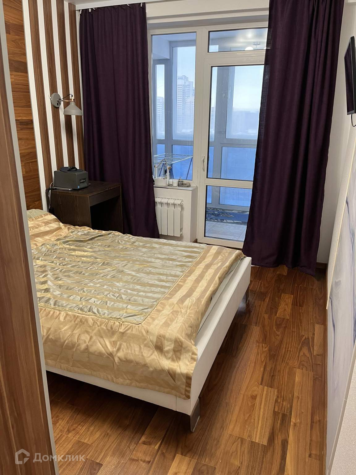 Отдельная спальня для взрослых 10.4 м2, с теплой лоджией 4,2 м2 под кабинет, двойной контур остекления +теплые полы, между комнатой и балконом окна опустили ниже для света.