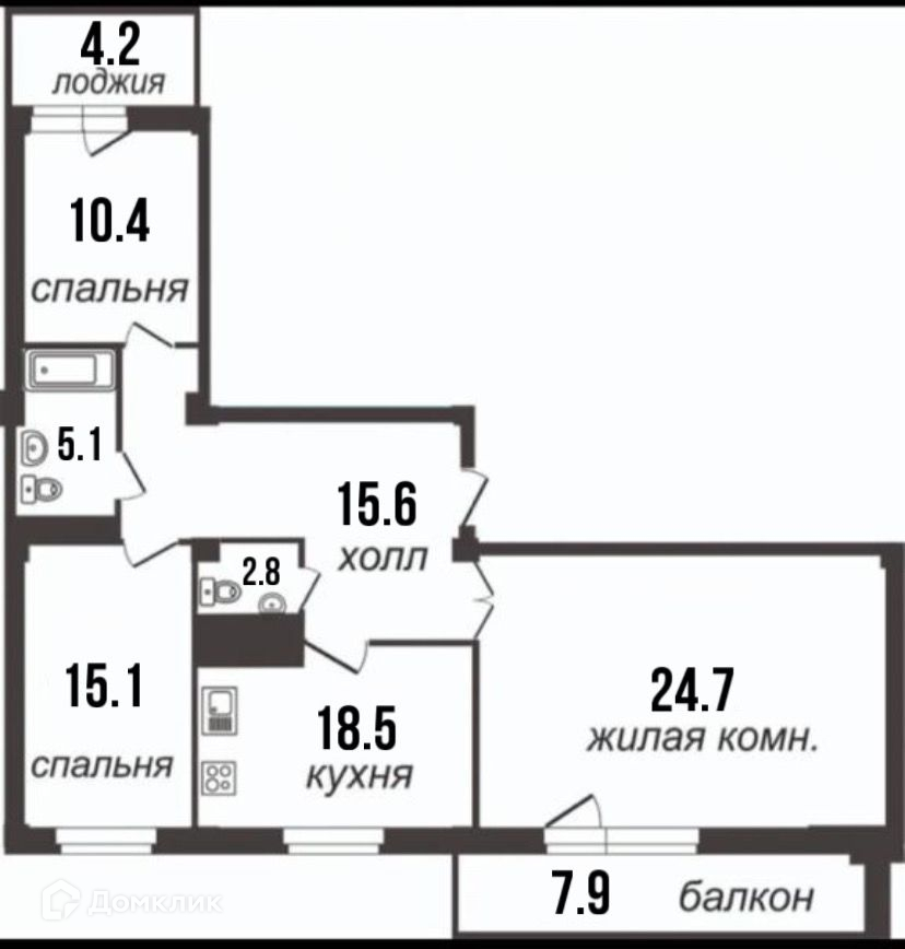 Две лоджии (теплая 4,2 м2 под кабинет, и холодная 7,9 м2 ).