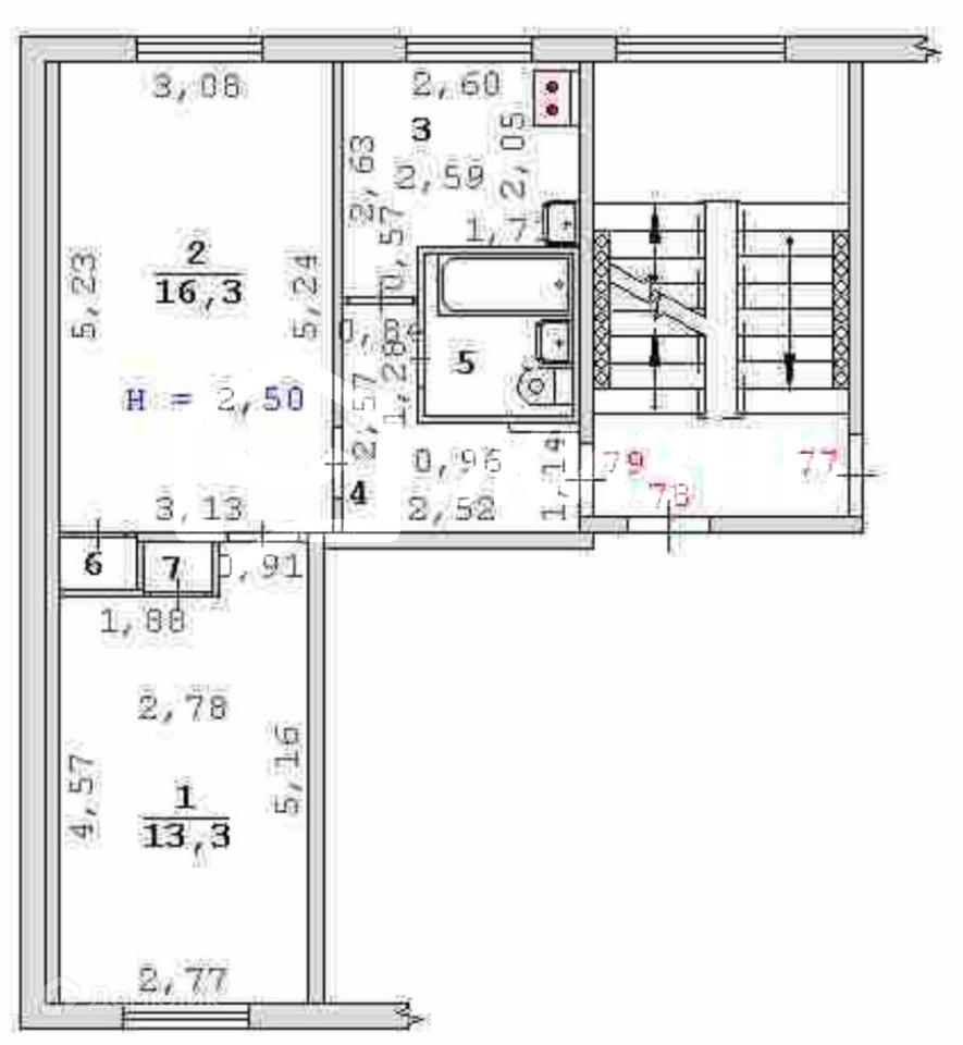 Высота потолков 2.5 м