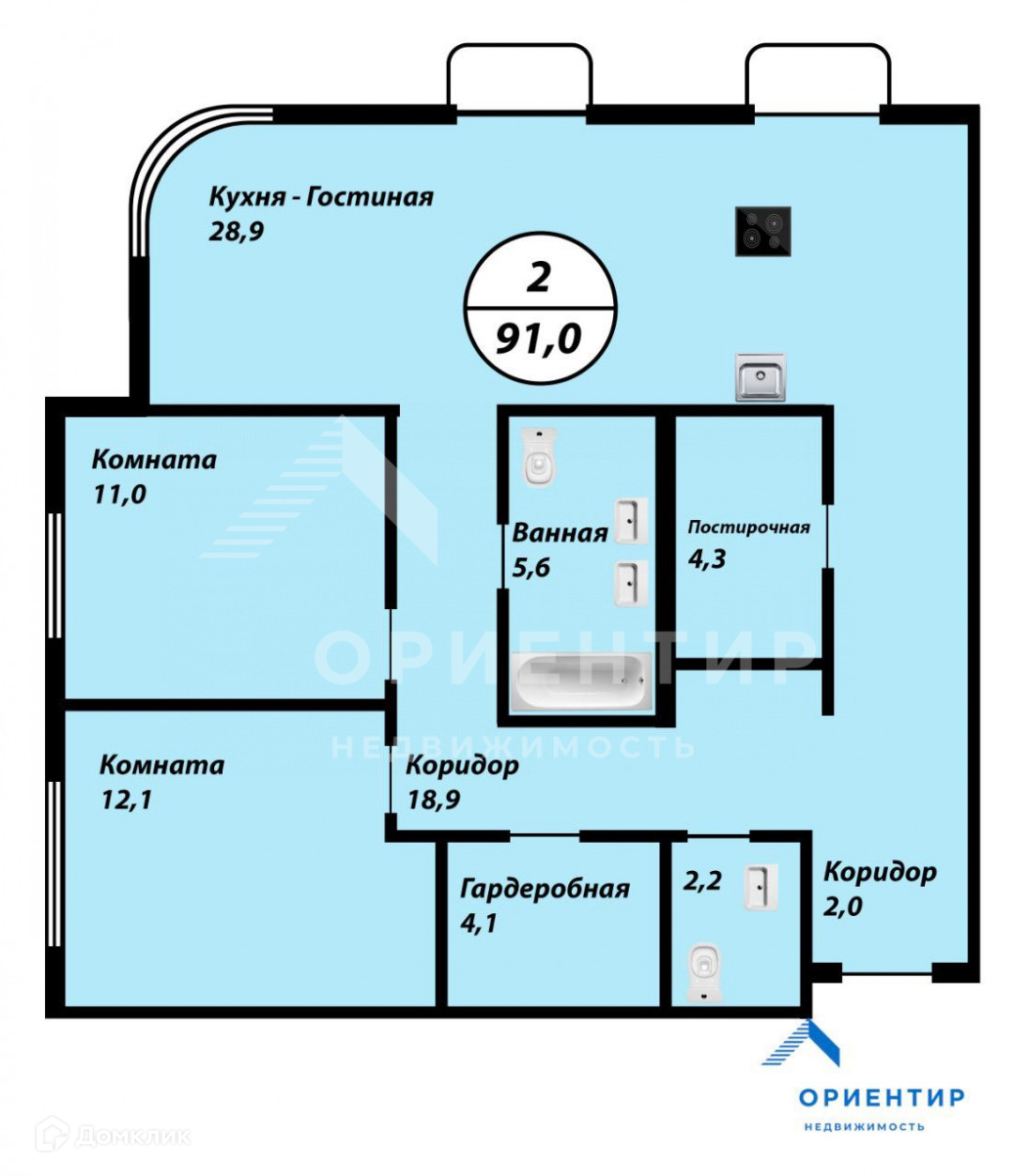 Общая площадь 89.9 м2