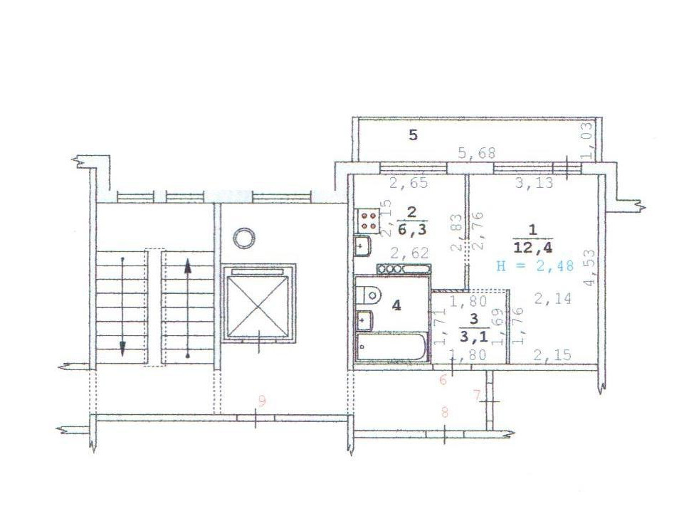 Балкон, лоджия 1 балкон