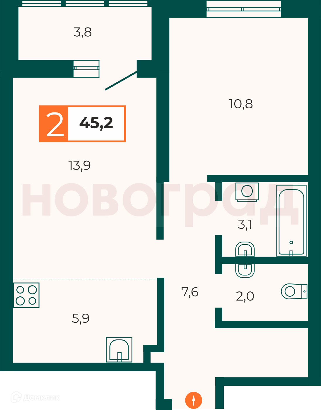 Общая площадь 45.2 м2