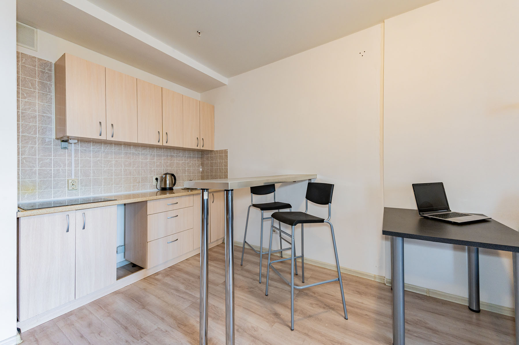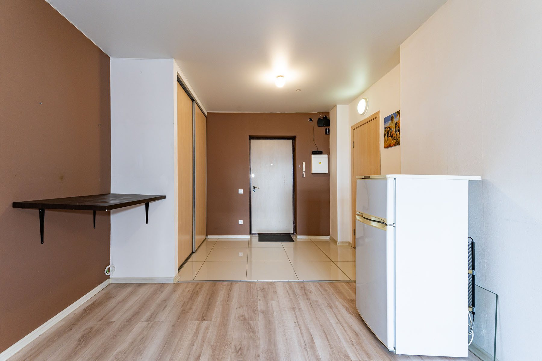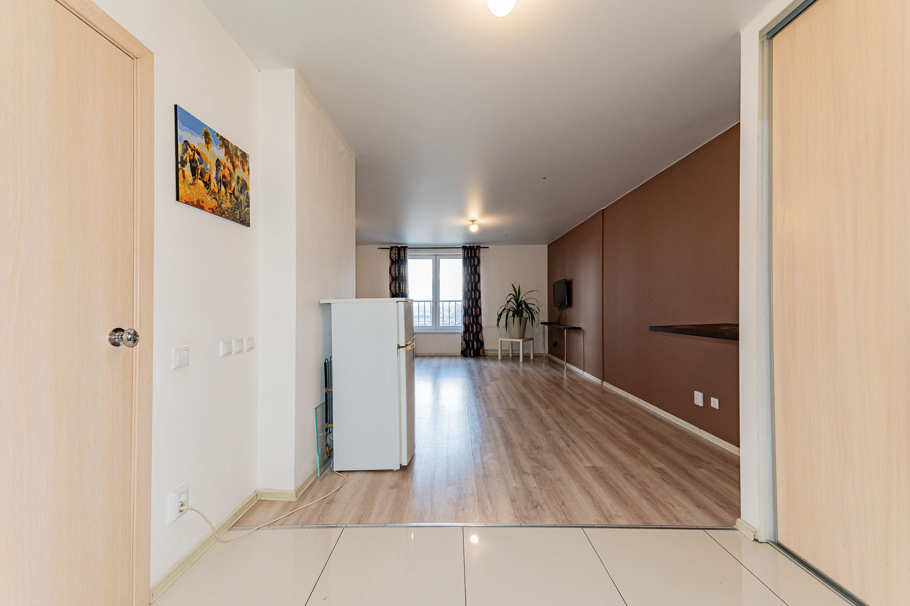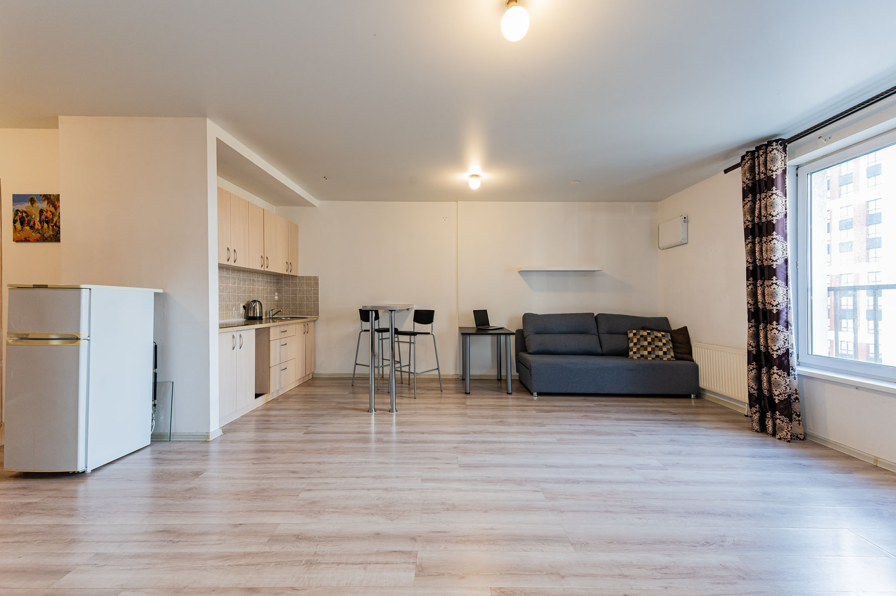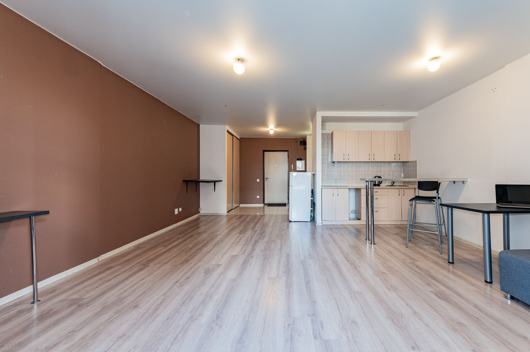Апартаменты по планировке - это просторная студия. В отличном состоянии. Сделан ремонт: натяжной потолок, ламинат, в ванной комнате выложена плитка.