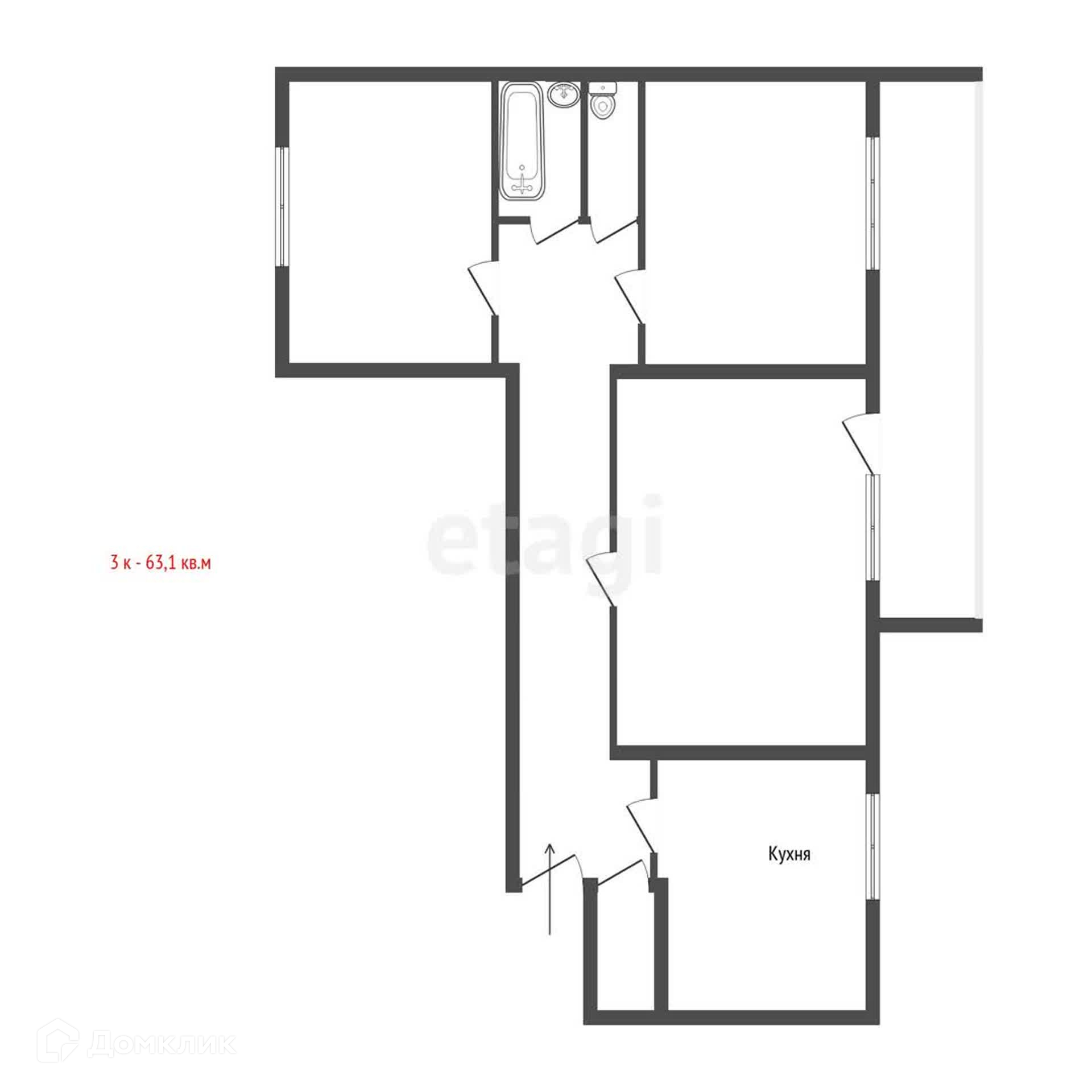 Общая площадь 63.1 м2