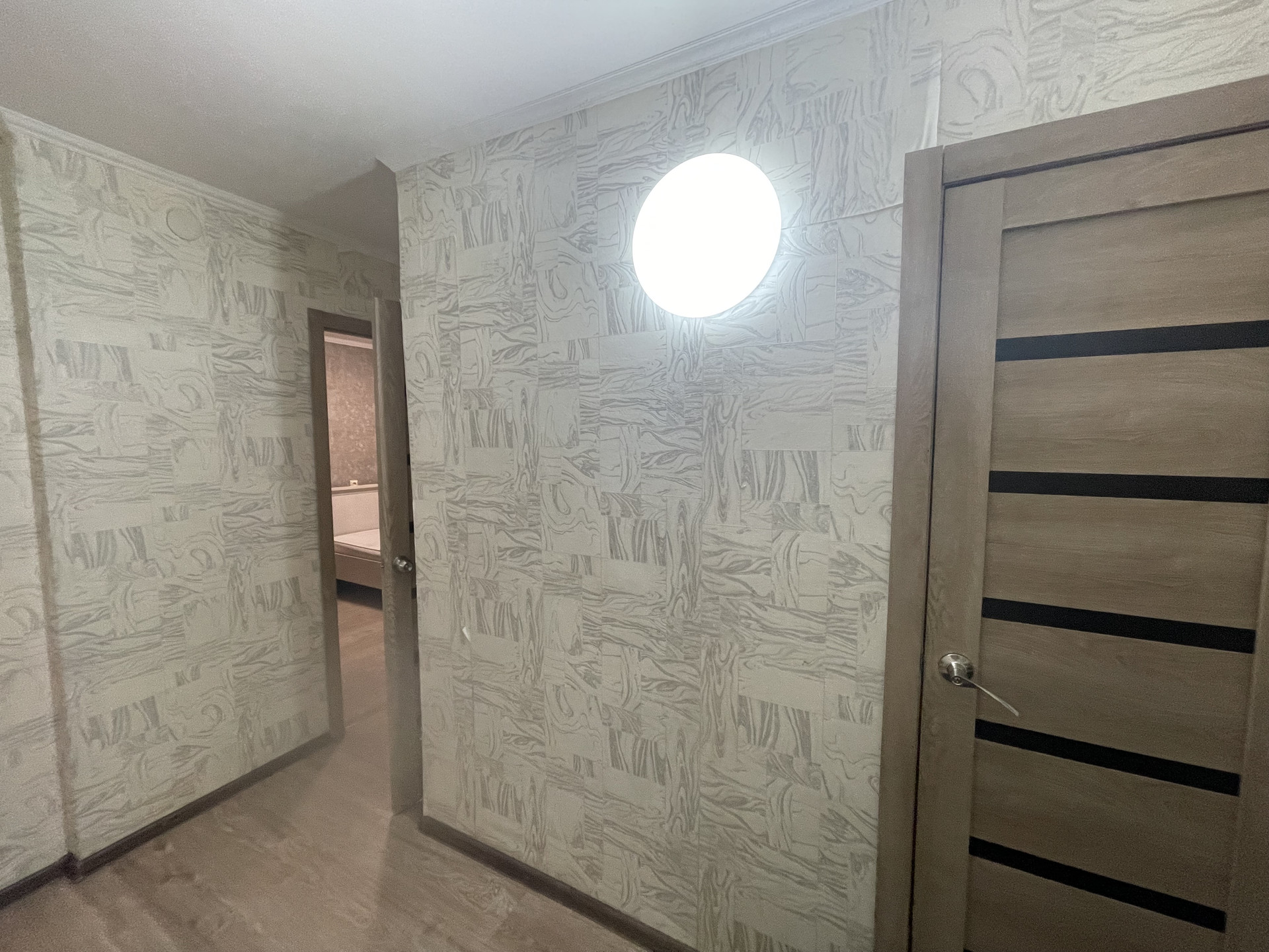 произведена установка межкомнатных дверей (так же установлена входная сейф-дверь, на фото видно, что дверь в полиэтилене,  так как идёт ремонт в подъезде);