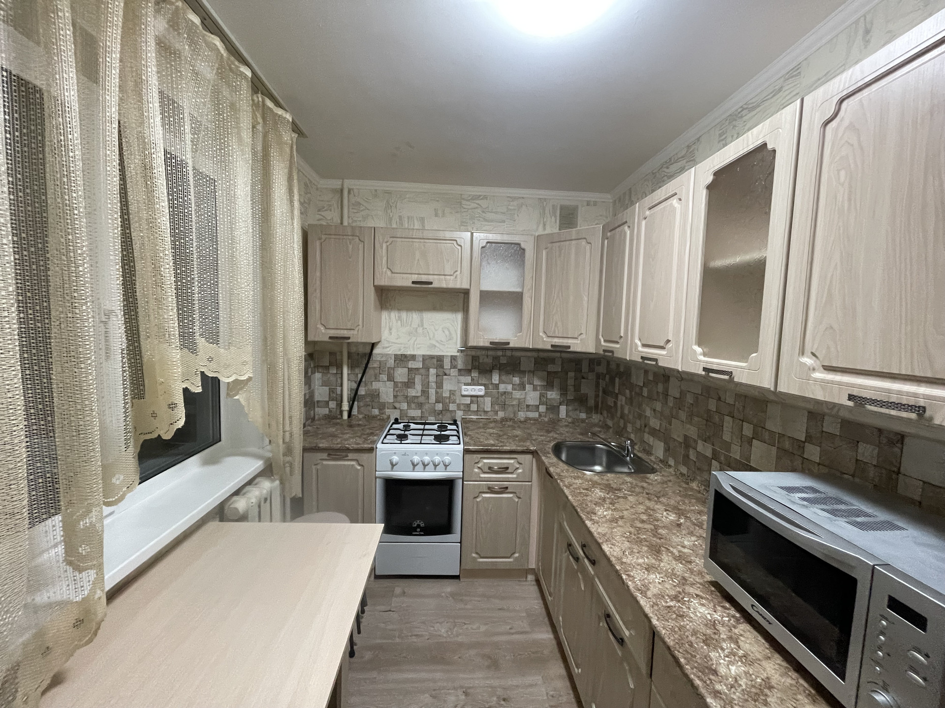 В подарок остаётся кухонная мебель (в том числе техника и микроволновая печь), в квартире остаются места для хранения одежды  и вся мебель которая в квартире;