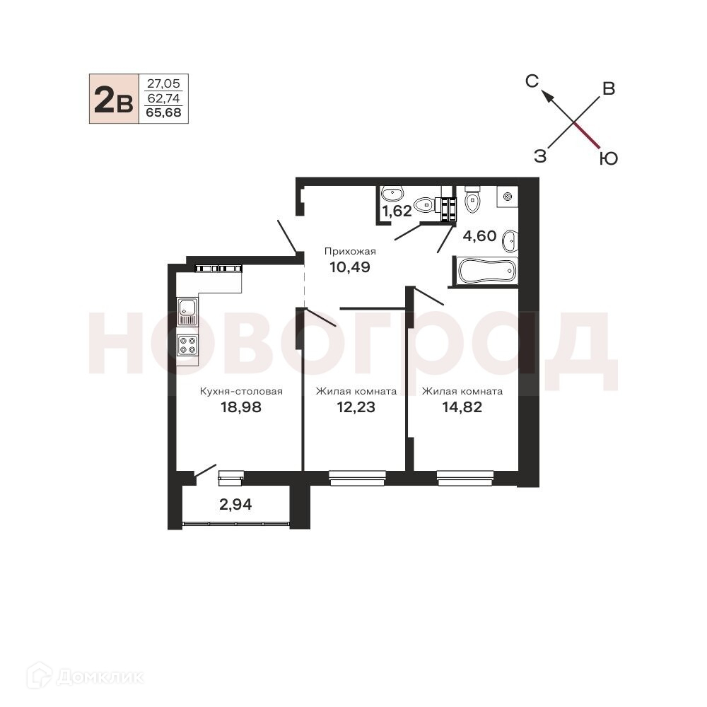 Общая площадь 65.68 м2