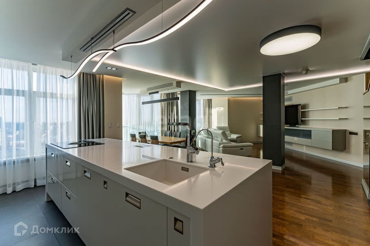 В кваpтире куxня - гоcтинaя, 4 спaльни co cвоими санузлами, кабинет, гардеробные, сауна, постирочная, потрясающий лофт на верхнем уровне , выполненный в стиле минимализм. В квартире никто не жил.
