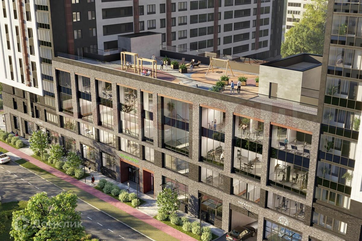 Лаундж зона на крыше.Шезлонги и качели с навесом — читайте книги, листайте соцсети или просто мечтайте!Спорт под окнами