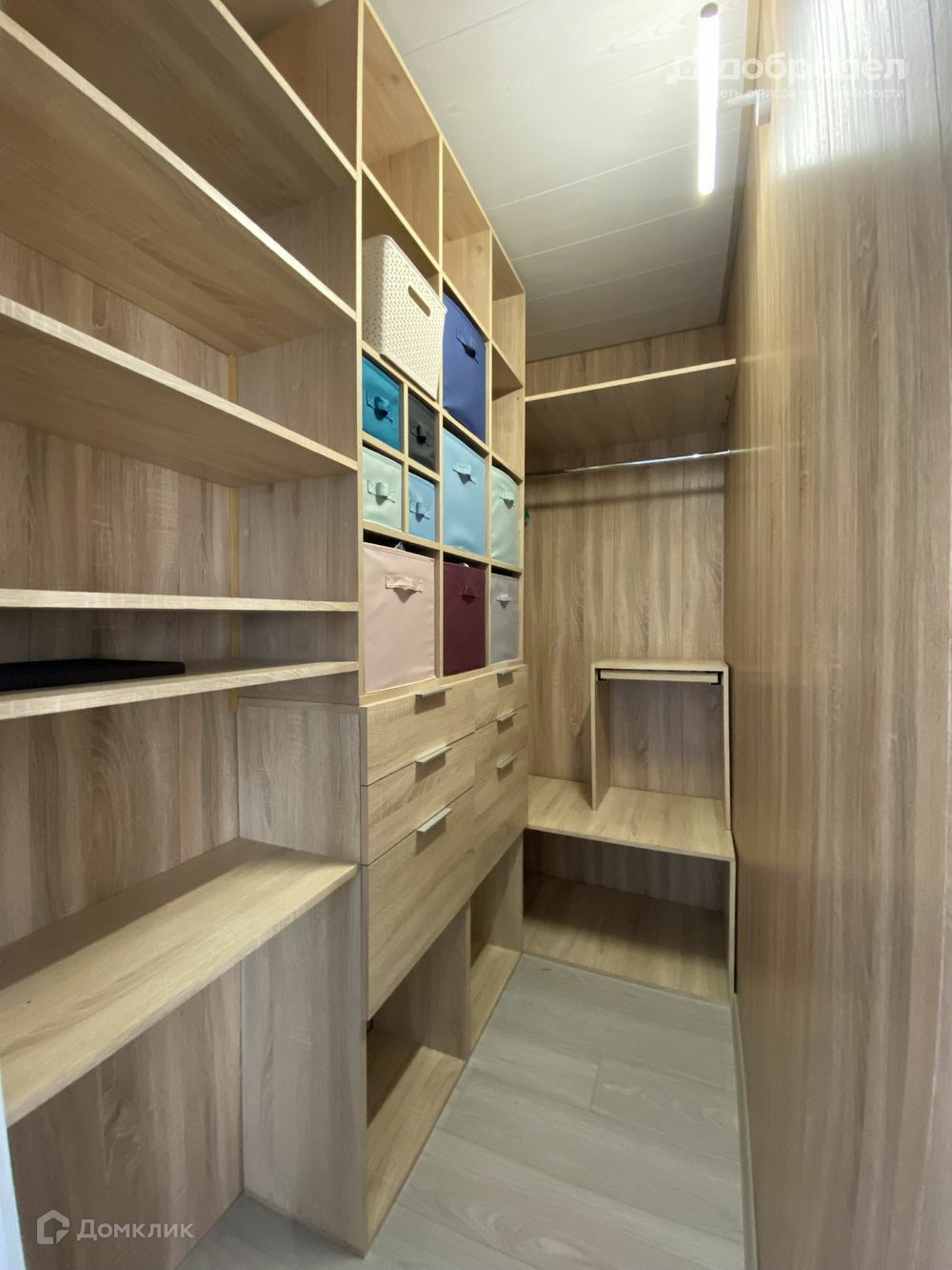 Оборудована гардеробная с системой хранения, есть кладовка в прихожей.