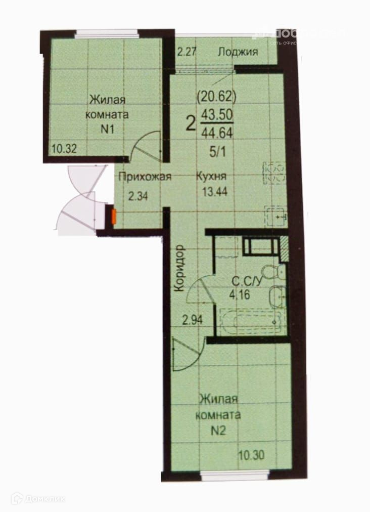 - отличная 2к квартира, площадью 45,8 м2