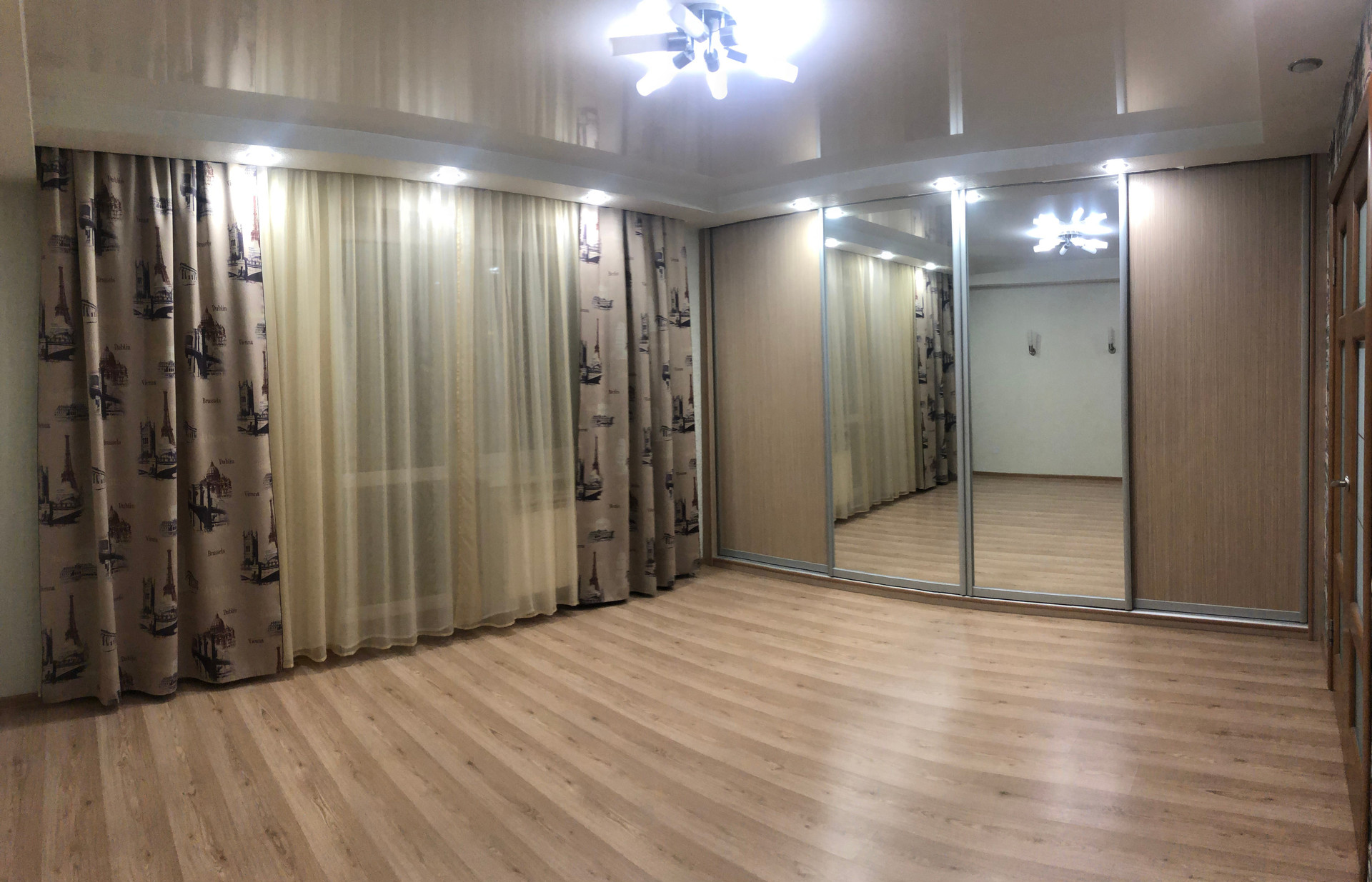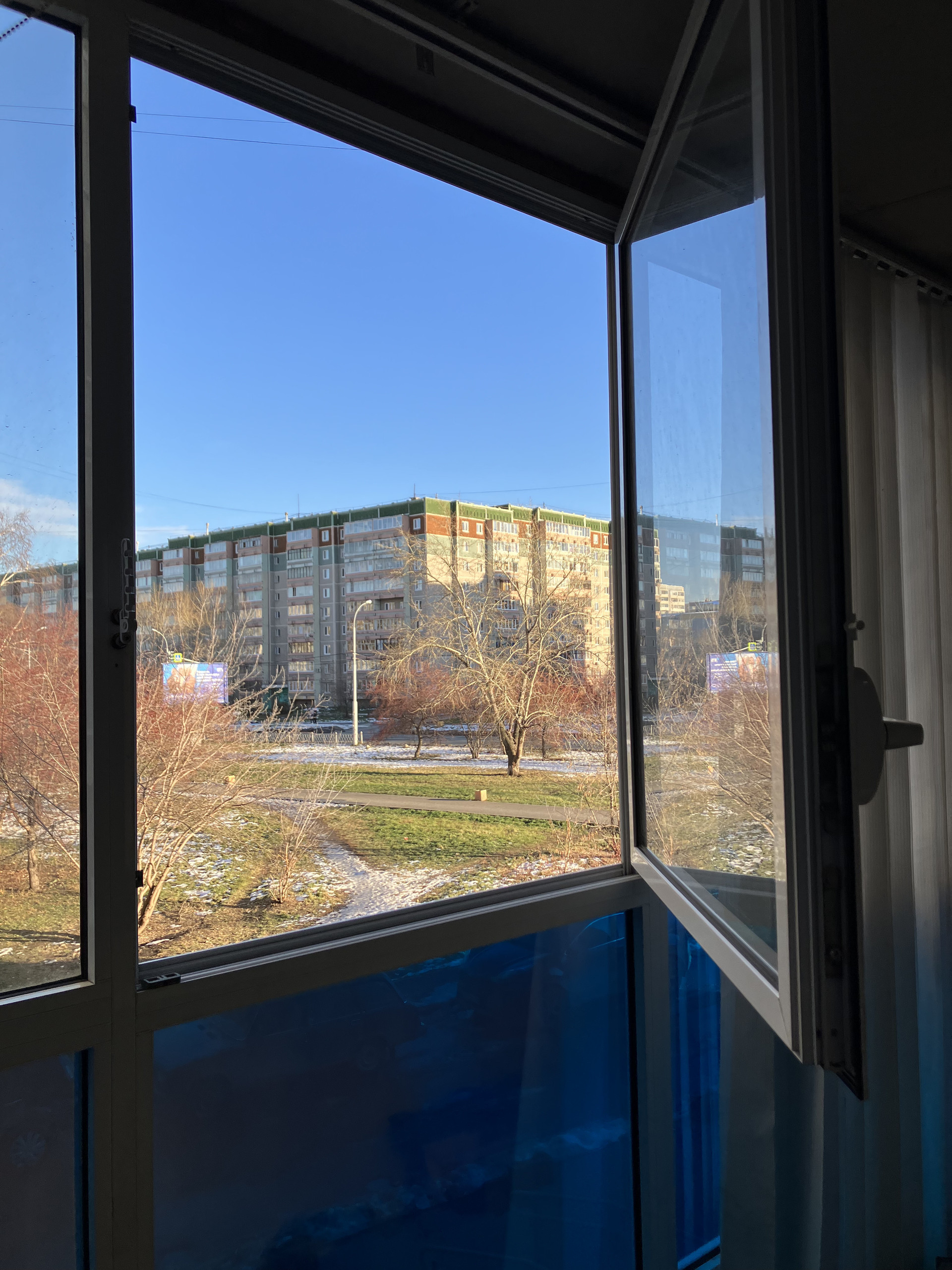 Окна выходят на две стороны: на запад и восток. Большая застекленная лоджия - 7,65 кв.м. (площадь квартиры вместе с лоджией составляет 84,35 кв.м.).