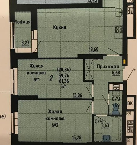 Общая площадь 60 м2