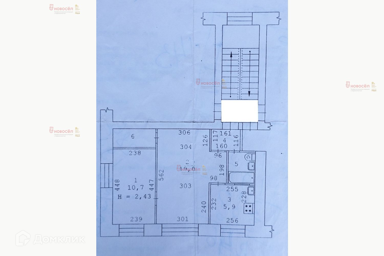 Общая площадь 43.3 м2