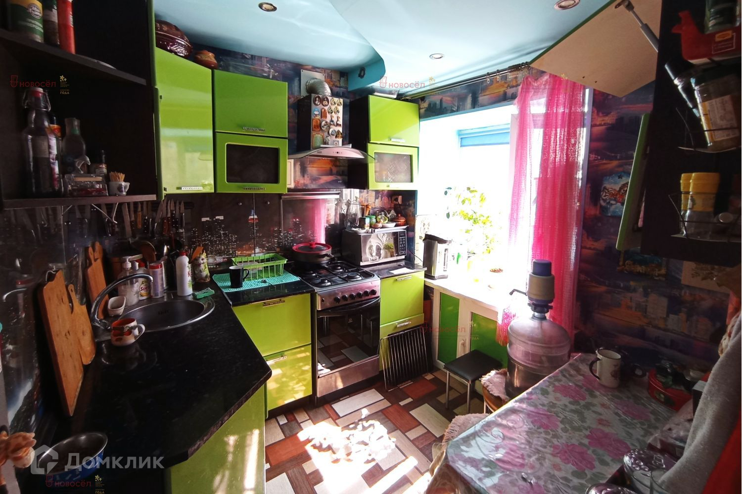 В подарок покупателям остается кухонный гарнитур с плитой, большой вместительный шкаф-купе.