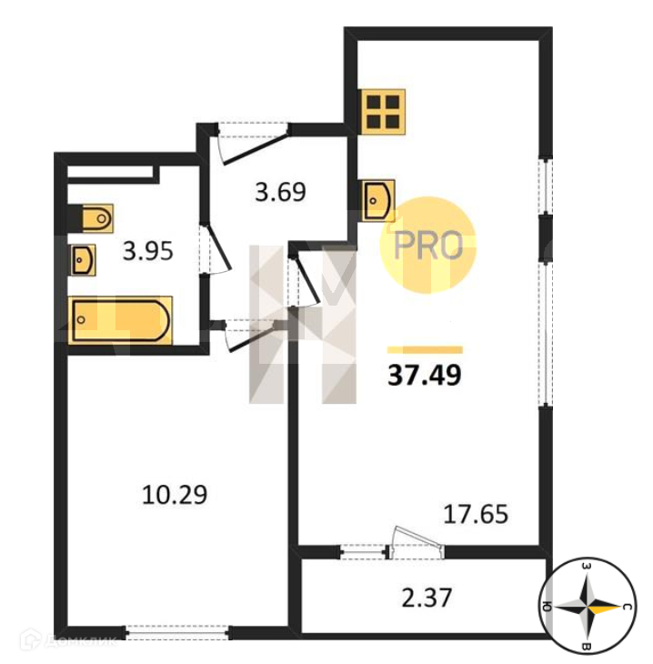 Общая площадь 37.49 м2