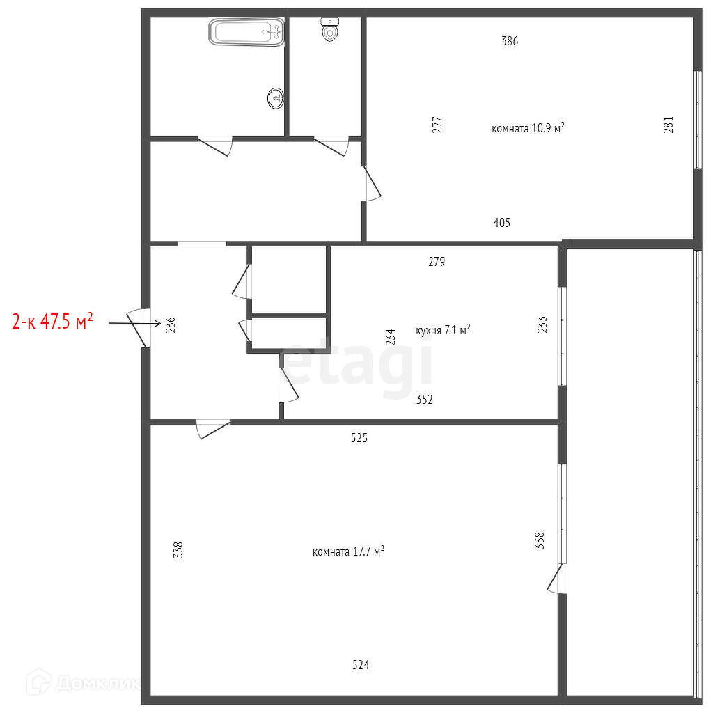 Общая площадь 48 м2