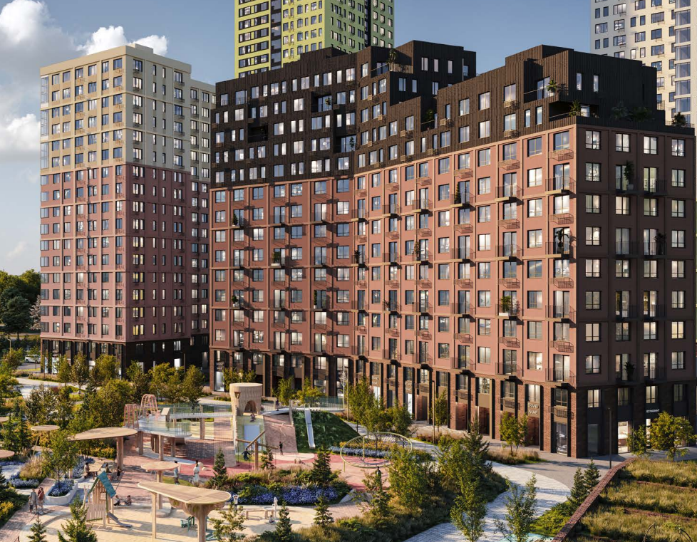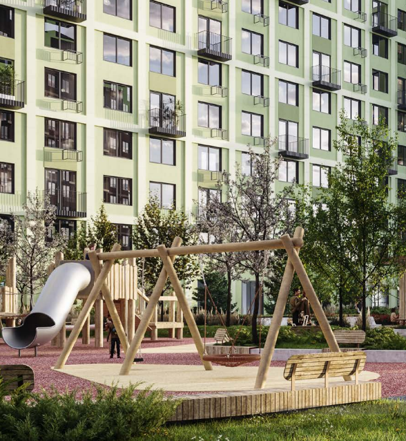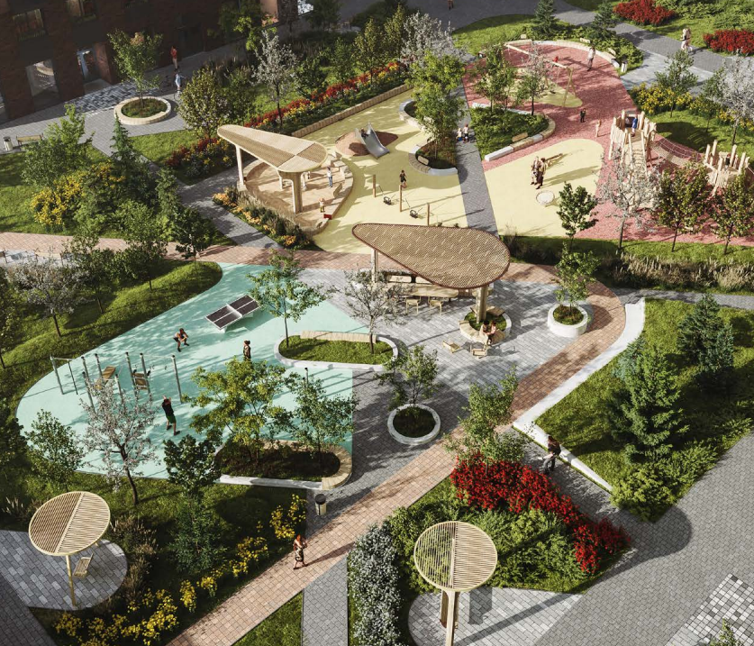 Вдоль всего комплекса расположится пешеходный бульвар. Его наполнение и функционал позволит и детям, и взрослым попробовать новые занятия и найти увлечения. Плейхаб – большая детская площадка с зонами для активного и спокойного отдыха, где дети разных возрастов общаются и развиваются, взрослые – занимаются спортом.