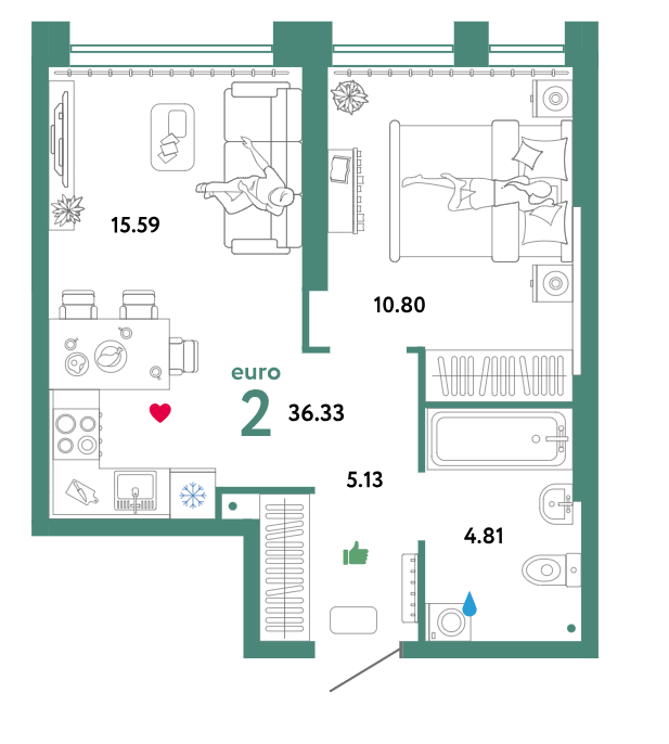 Общая площадь 36.33 м2