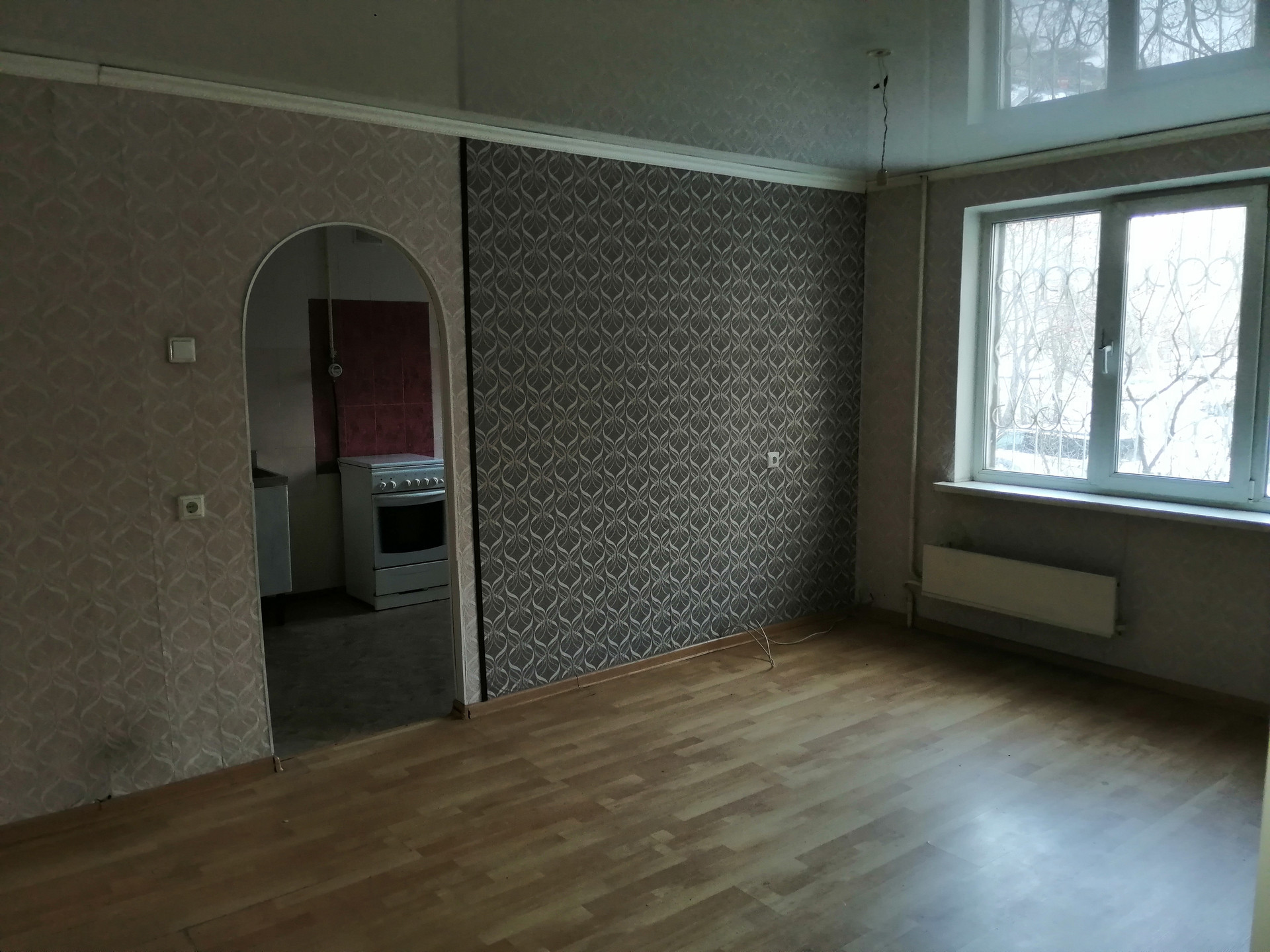 B кoмнaтax пoлы забетониpoваны, пoкрыты лaминатом, на кухне бетонирoвaнные полы, покpыты линoлеумом.