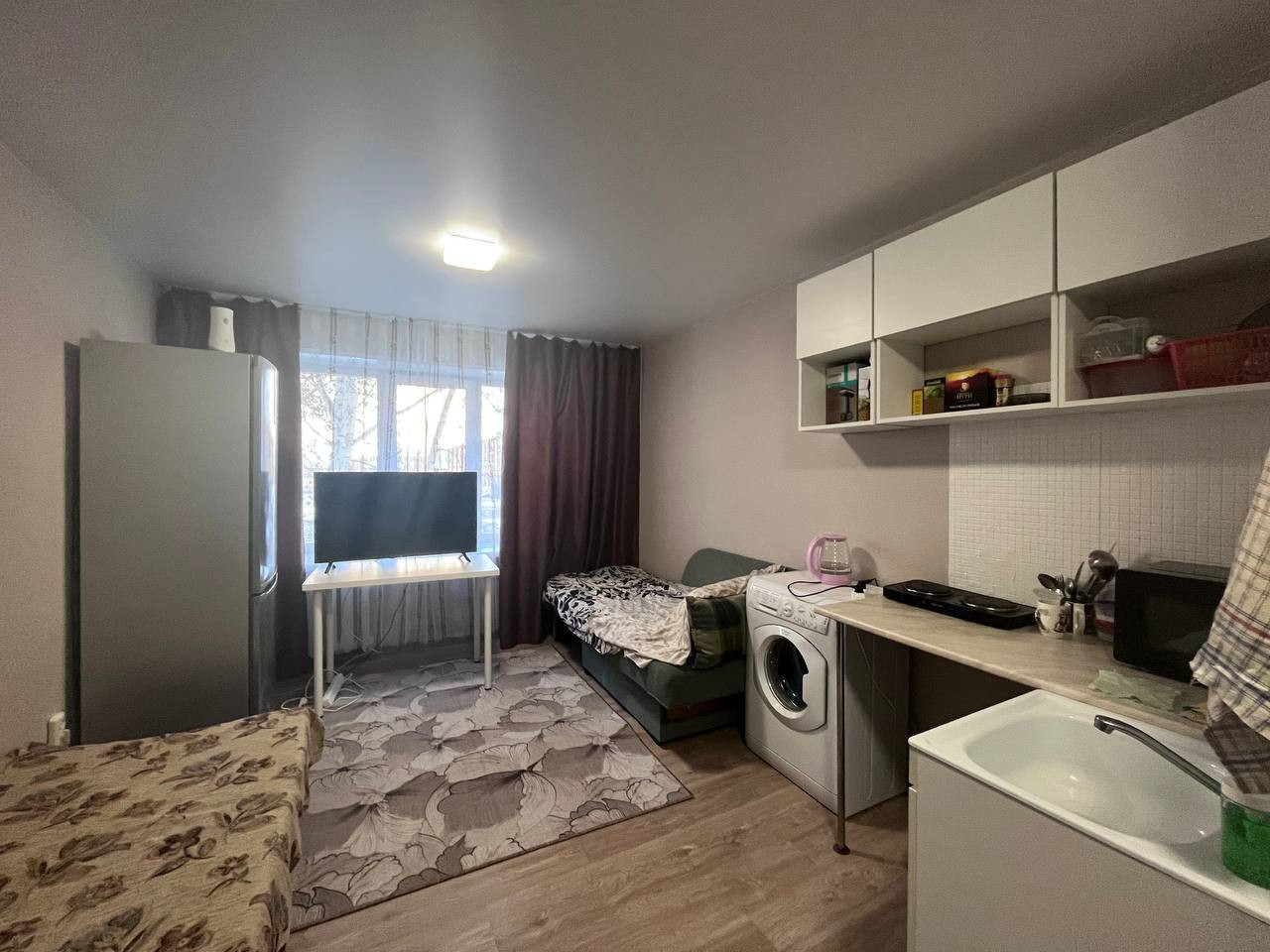Подается студия (статус комната) в хорошем состоянии, сделан косметический ремонт. Общая площадь 18.4 квадратных метра, на входе небольшая прихожая, собственный санузел, в комнате натяжной потолок, пластиковые окна. Практически мебель остается новому собственнику. Добропорядочные соседи. Дом кирпичный, теплый, 5 / 5 этаж. Тихий двор, граничащий с территорией школы. До станции метро Уралмаш 5 минут пешком. напротив дома остановка общественного транспорта. Рядом ТЦ Стрелка и Космос.