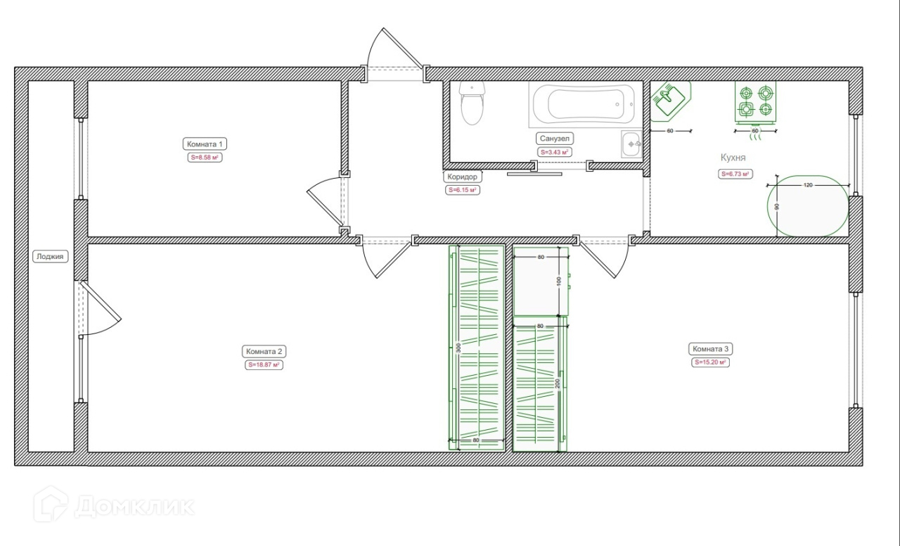 Количество комнат 3