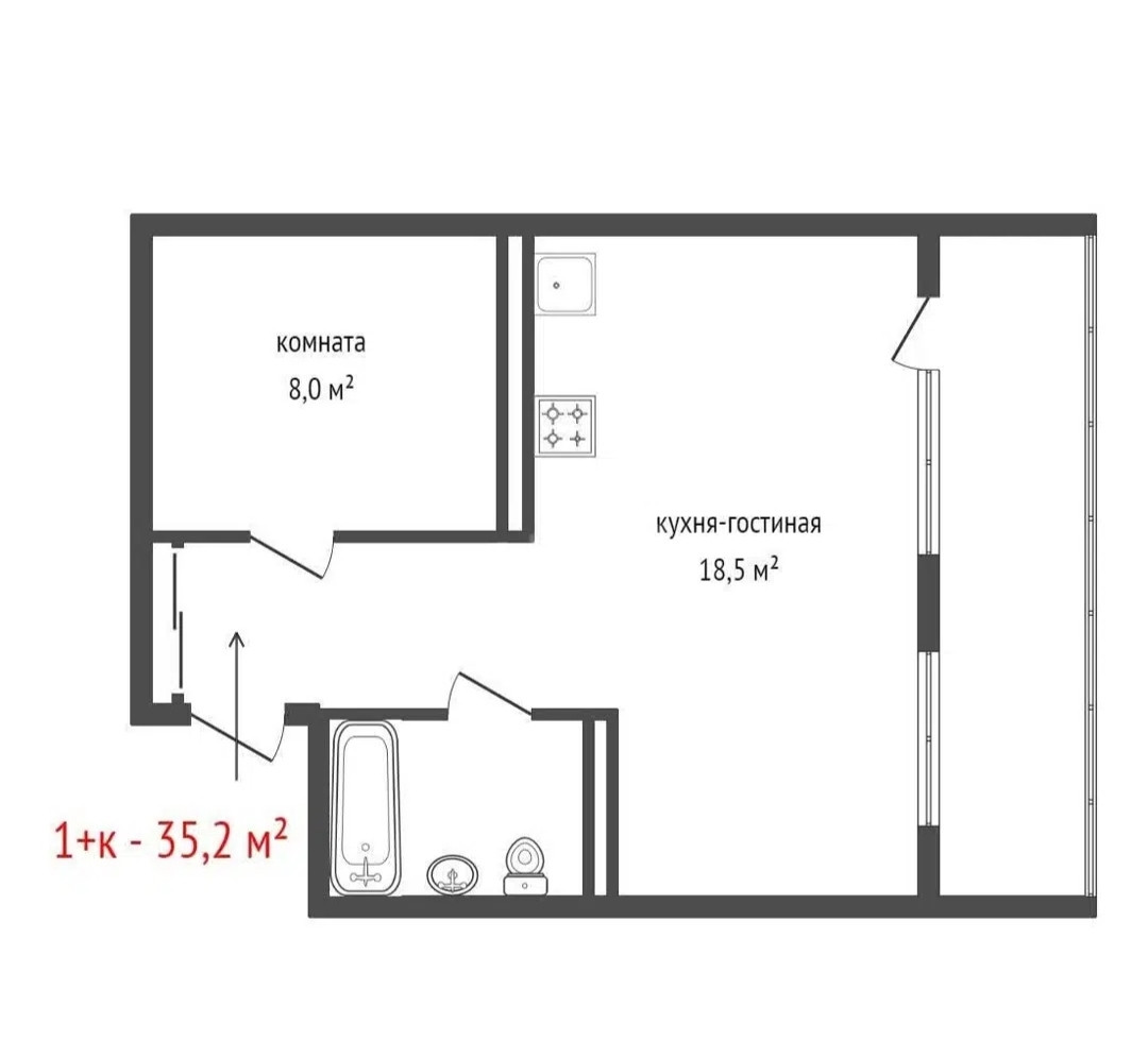 Общая площадь 35.2 м2