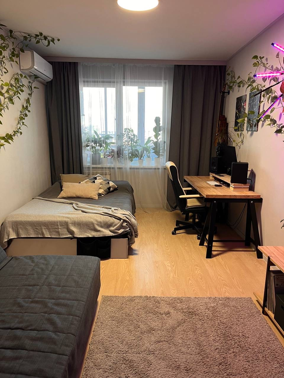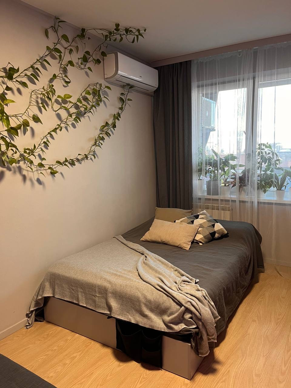 Продается с мебелью и бытовой техникой: в комнате - диван, кровать, кондиционер с умным управлением Ballu, в коридоре - вместительный шкаф-купе, на кухне - кухонный гарнитур и бытовая техника IKEA (встроенный холодильник, посудомоечная машина, микроволновка, фильтры для очистки воды), в ванной - все, что есть на фото, кроме стиральной машины.