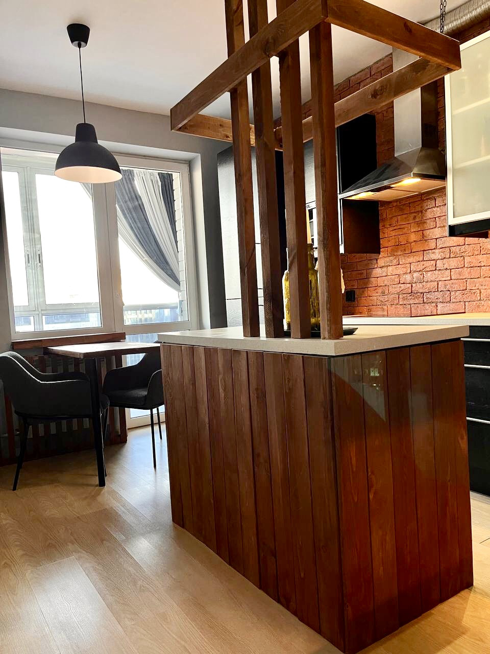 В квартире выполнен качественный ремонт, отделка в благородных спокойных тонах, очень стильно и сдержанно, состояние - идеальное! Дом кирпичный, теплый, прекрасная шумоизоляция. Квартира очень светлая и уютная.